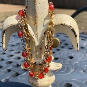 Chain hand crafted bracelet with rosary beads the charms are a key and a tiny Locket...Made by me