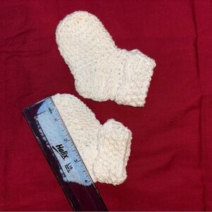 Adorable handmade baby booties in a soft white color. Perfect for keeping little feet warm. Hand-Crochet by @epylelewis.