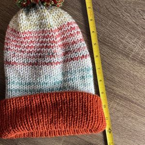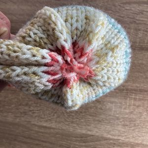 Hand crocheted beanie multi colored check pics for measurements..never worn super cute boho style