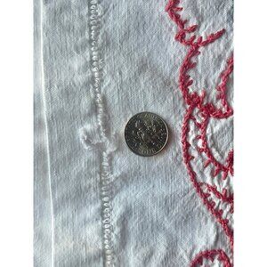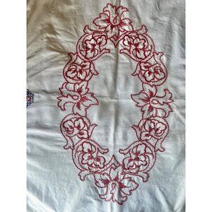 Hand-Embroidered White Cotton Tablecloth Coral & Dark Blue Griffin Floral Motif