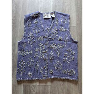 Hand-Embroidered Wool Vest By Portraits Northern Isles Purple Floral S/P