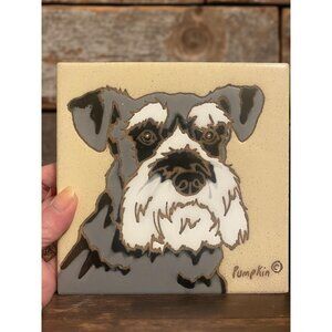 Hand-Glazed Painted Schnauzer Dog Tile Trivet By Pumpkin Inc. 6"x6" For Hanging