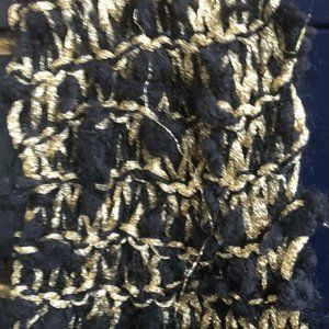 Hand-Knit Black & Shiny Gold Warm, Long Winter Scarf. Statement AND Practicality