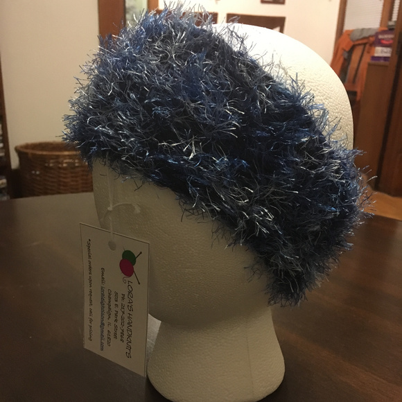 Hand-knit blue fuzzy headband/earwarmer. Fits heads 18-22 inches. 3 1/2 inches wide. Hand-knit by me.