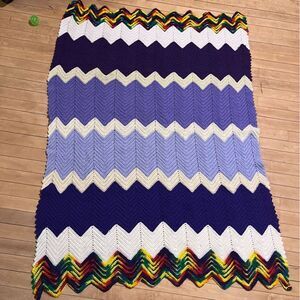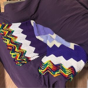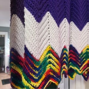 Hand Knit Chevron Afghan Pride Ombré 62x39