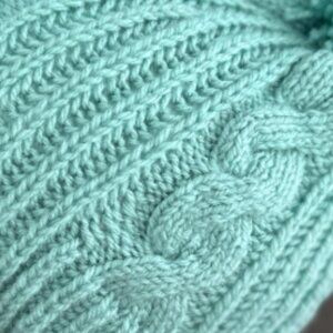 Hand-Knitted Winter Hat with Pom-Pom – Soft Blue Cable Beanie
