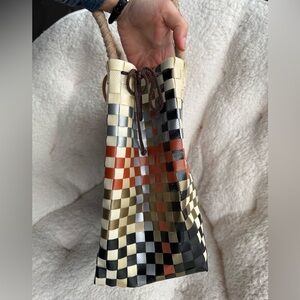 Tags: small bag, bag, brown bag, small brown bag, vintage, summer, outside, sun, dress, skirt, pants, top, shirt.