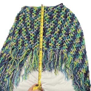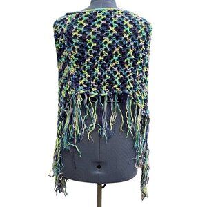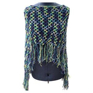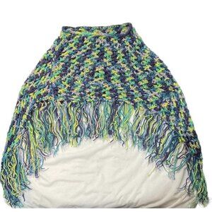 Hand-Made Bohemian Crocheted Poncho/Shawl w/Fringe Multicolor 70's Style Hippie