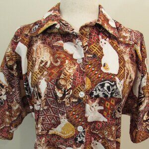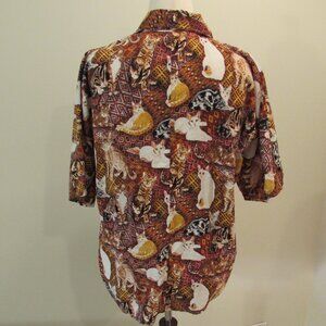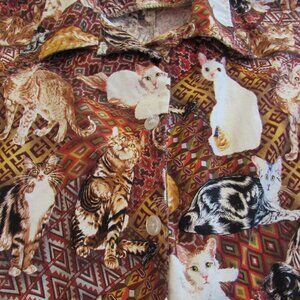 HandMade Cotton Cat Print ♥ Relaxed Button Down Shirt XL/XXL