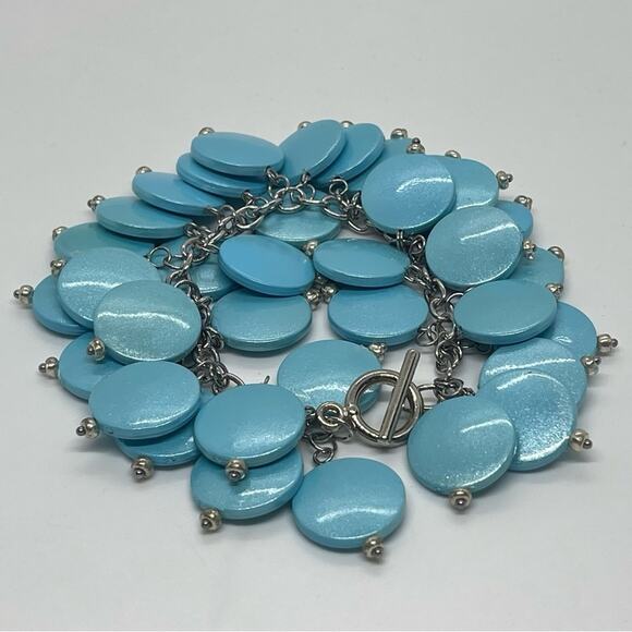 Handmade Teal Metallic Whimsical Acrylic Beaded Bracelet NWT