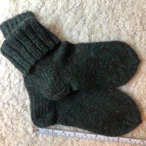 Hand knitted merino wool double thread socks. Usually fit the size 6-10. Dark green. Comfy and very warm. New.