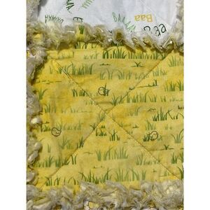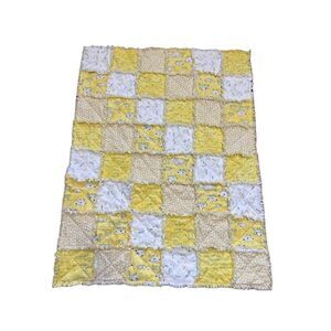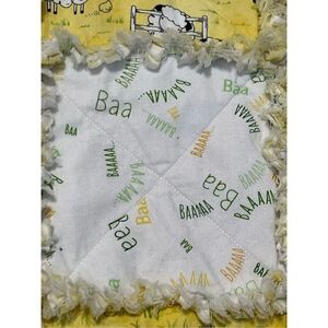 Absolutely gorgeous handmade baby rag reversible blanket featuring sheep, ducks and baby chicks on one side and a taupe floral and light yellow background on the other. Great gender neutral blanket.