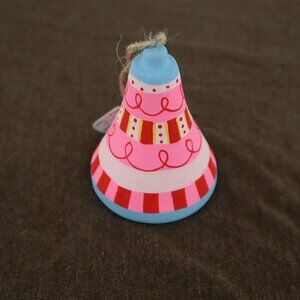 Hand-Painted Bell Ornament Pink Christmas Holiday Decor Whimsical Festive NWT