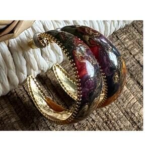 Hand-Painted Boho Vintage inspired Earrings, Multicolor Artisan Style w/Gold Accents. Beautiful artisan-style boho earrings, multicolor w/shimmering gold accents. Unique, textured finish.
