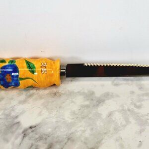 Matching 8″ cheese knife by Linda Raffell (CenTrum Normandy collection) with hand-painted handle.