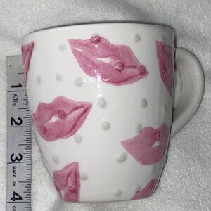 Hand-Painted Ceramic Mug With Pink Lips & Raised Polka Dot Design Made In Italy