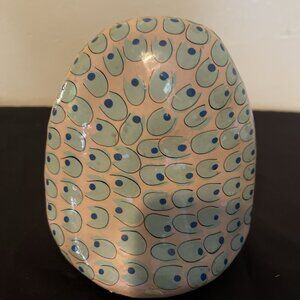 This exquisitely crafted ceramic owl figurine, adorned with intricate hand-painted details, enhances any home or office setting with its distinctive charm. The vibrant colors and artistic design make it a visually appealing addition to decor, blending seamlessly with various styles and themes.