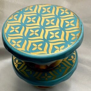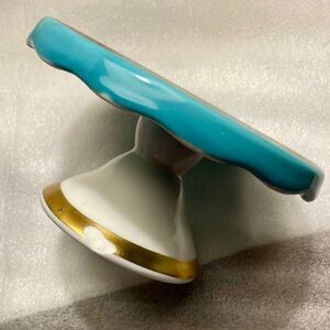 Hand-Painted Ceramic Pedestal Stands Turquoise, Gold Mini Cake or Candle…