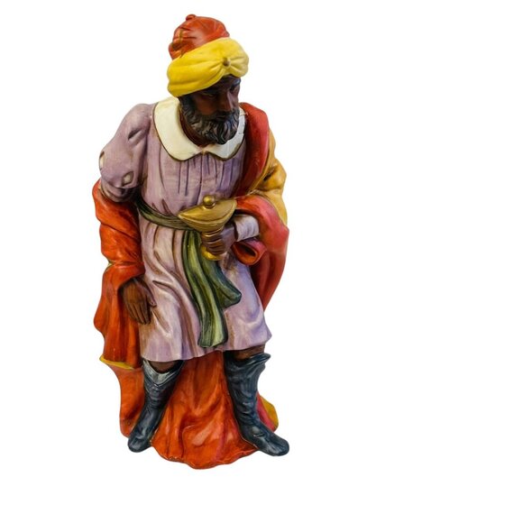 Elegant hand-painted ceramic Wise Man figurine, perfect for nativity scenes or as a collectible. The intricate details and vibrant colors add a touch of sophistication.