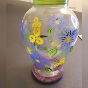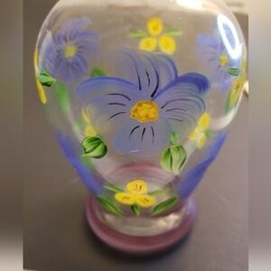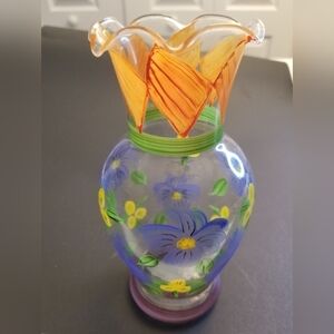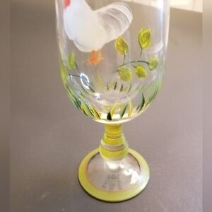 HandPainted Clear Glass 7 1/2" Vase with Colorful Chicken Country Hen Decor