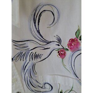 Hand-Painted Creative Artwear White Button-Up Shirt Floral Bird Women's Med