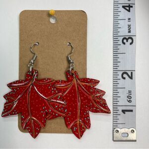 Hand-Painted Earrings Wooden Red Maple Leaf for Fall Halloween Thanksgiving New