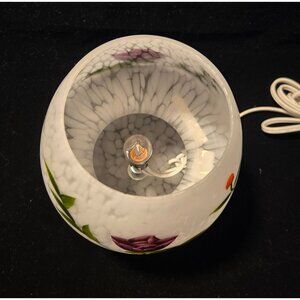 Hand-Painted Floral Frosted Glass Table Lamp With Corded Switch