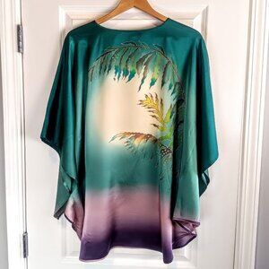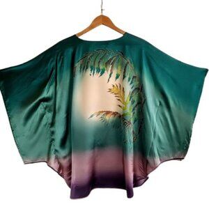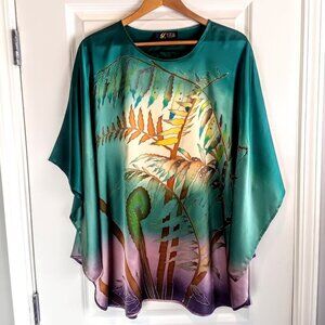 Stunning hand-painted floral pure mulberry silk pullover tunic top.