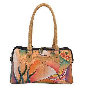 Hand-Painted Genuine Leather Multi Compartment Satchel - Butterfly C UwU