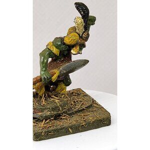 This detailed hand-painted goblin warrior miniature adds character and vibrancy to tabletop gaming or collectible displays. Its unique craftsmanship and vibrant colors make it an eye-catching addition to any collection, blending artistic detail and fantasy elements seamlessly.