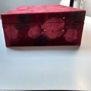 This jewelry box is in good condition. It measures 12" long x 8" wide x 3.5" tall.