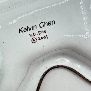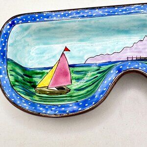 Hand-Painted Kelvin Chen Enamel Copper Eyeglasses Dish Tray Sailboat Scene 2001