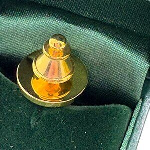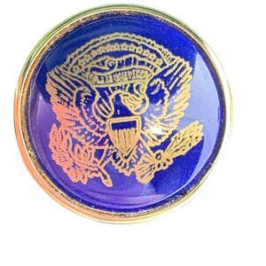 Elegant and patriotic lapel pin featuring a gold eagle emblem on a blue enamel background. Presented in a green gift box for preservation.