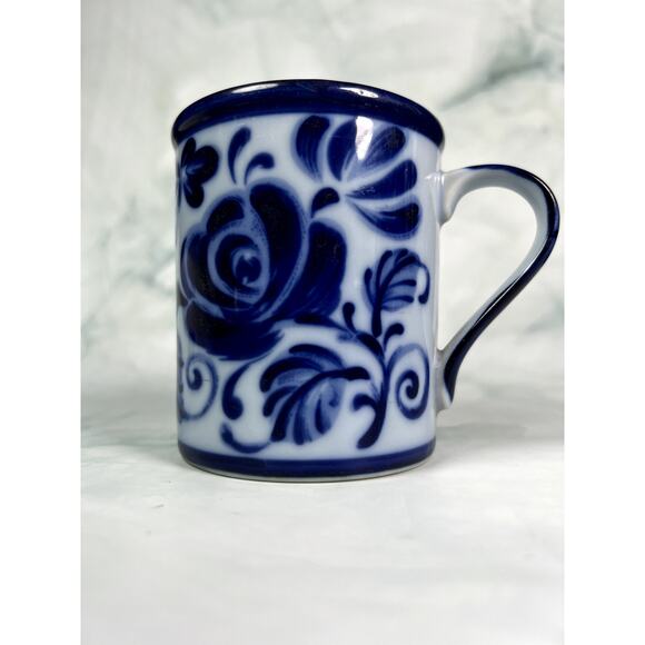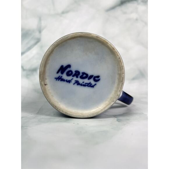 Elevate your daily ritual with this stunning hand-painted ceramic mug featuring a traditional Nordic blue floral motif. With a generous size and a sturdy handle, it’s perfect for coffee lovers and collectors of unique artisan drinkware. Its glossy glaze and intricate design make it both a functional favorite and a charming display piece. Excellent condition, ideal for gifting or everyday use