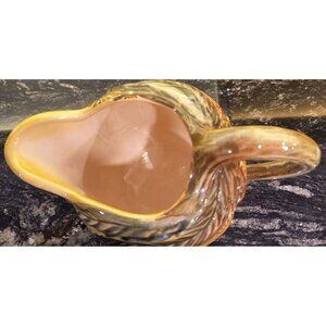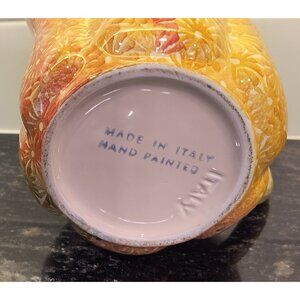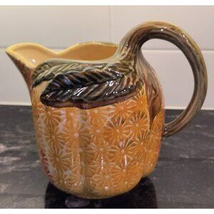 Hand-Painted Orange, Gold, Green Italian Flower-Pattern Ceramic Pitcher