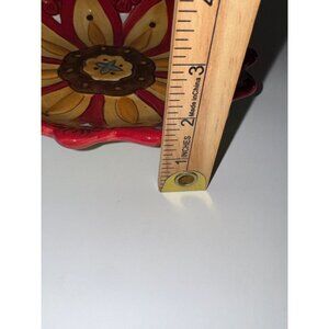 This decorative plate from Pier 1 Imports showcases a vibrant floral design, perfect for adding a touch of artistry to any table setting. The hand-painted earthenware construction ensures durability and uniqueness.