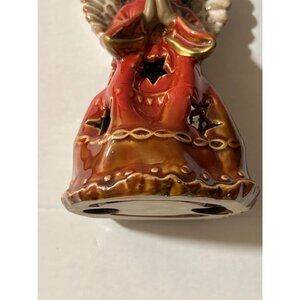 Hand-Painted Red Ceramic Angel Candle Holder W/Star & Gold Accents Religious