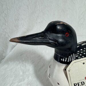 Hand-Painted Red Shed Loon Wood Décor Statue 12" Country Rustic