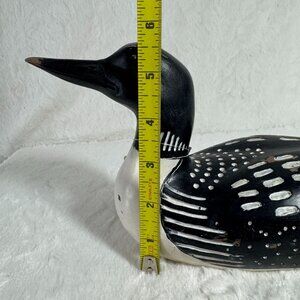 Amidst a tranquil lakeside setting, this hand-painted Red Shed Loon statue captures the majestic beauty of nature. With its distinctive black and white patterns, this wooden décor piece offers a lifelike touch to any room. Its calm demeanor and exquisite detailing invite you to envision serene waters and the gentle calls of loons echoing in the distance.