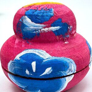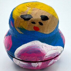 This 4-piece set of Russian Matryoshka wooden nesting dolls showcases vibrant hand-painted floral designs with glitter accents. Crafted with attention to detail, these dolls are a traditional decorative item and a charming collector's piece.