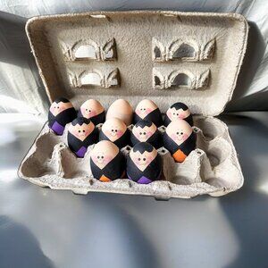 Say hello to this adorable carton of vampire eggs, each hand-painted with little fangs, tiny tuxedos, and mischievous smiles. Whether you’re decorating for Halloween, adding a gothic touch to Easter, or just love quirky handmade treasures, this set is a must-have!