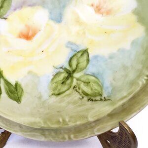 Hand-Painted Vintage Green Floral Trivet Signed Pansy Franklin Porcelain Roses