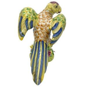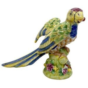 Hand Painted Vintage Tulien Majolica Parrot Bird Figurine Statue. In good condition, no flaws except a few chips on one flower as shown in last photo. 8” tall, 9” long, 6” wide.