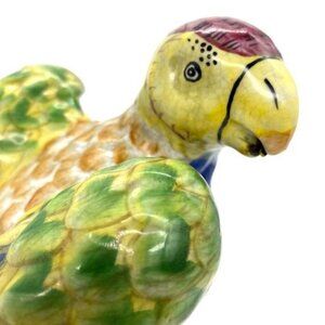 Hand Painted Vintage Tulien Majolica Parrot Bird Statue