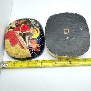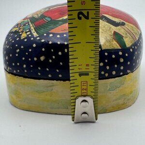 This meticulously hand-painted trinket box offers a charming holiday aesthetic. Featuring Santa and reindeer, it makes an elegant addition to seasonal decor.