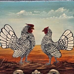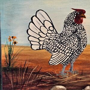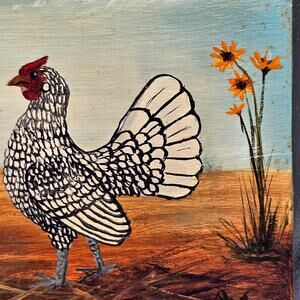 Sebright Hand-Painted White Rooster & Chicken Farmhouse Wall Art - 5x7 Wood Artist Signed. (Stand is NOT included). Add a touch of charm to your home with this adorable hand-painted white rooster and chicken farmhouse decor! Measuring 5x7 inches, this unique wood wall decor piece is perfect for any kitchen or farmhouse-themed space. Artist signed, this artist showcases the craftsmanship and individuality that make it a must-have for collectors and decor enthusiasts alike. Ideal for gifting or as a cozy addition to your own decor, this delightful piece brings warmth and character to any room. Hang it proudly or display it on a shelf!