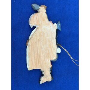 This hand-painted Williraye Studio Santa ornament features intricate details, including a starry red coat and a gift sack. Ideal for enhancing holiday decor.