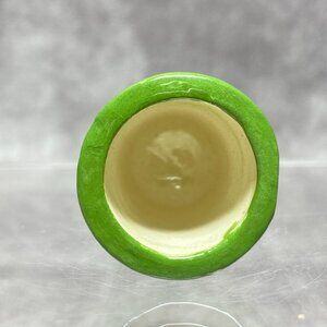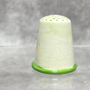 Hand-Painted Wooden Thimble With Green Christmas Tree Design & Polka Dot Top