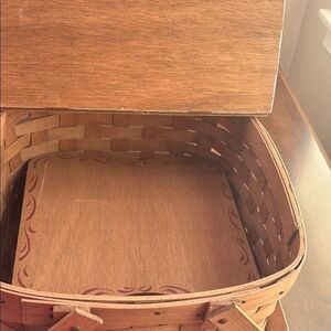 Open and inside is a pie shelf to allow you to carry 2 pies. Shelf can be removed to hold a cake or use it for a picnic lunch