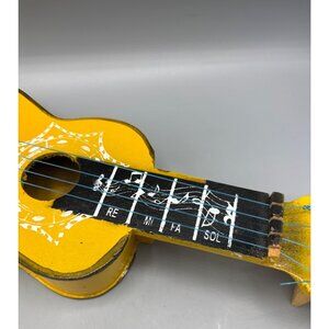 Hand-Painted Yellow Wooden Toy Guitar With Musical Notes Design Mexico
